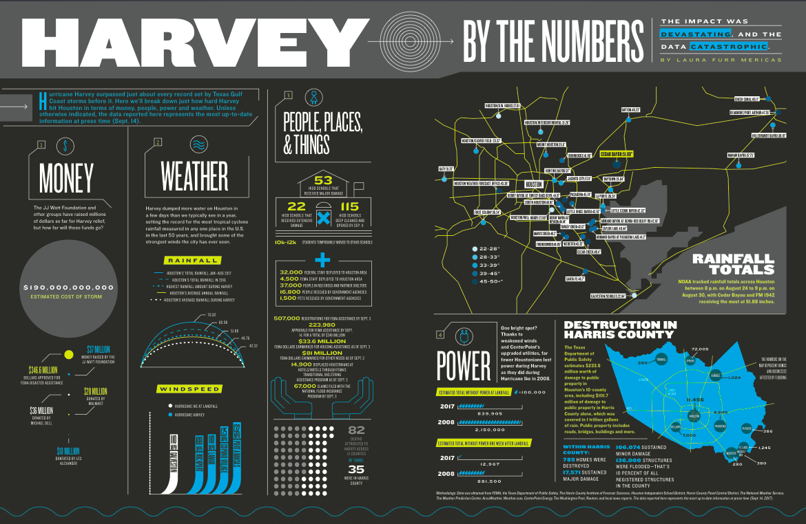 This article was published for Houstonia Magazine’s The Heroes of Harvey feature and was nominated for and Eddie and Ozzie award for Data Visualization. Read more here.